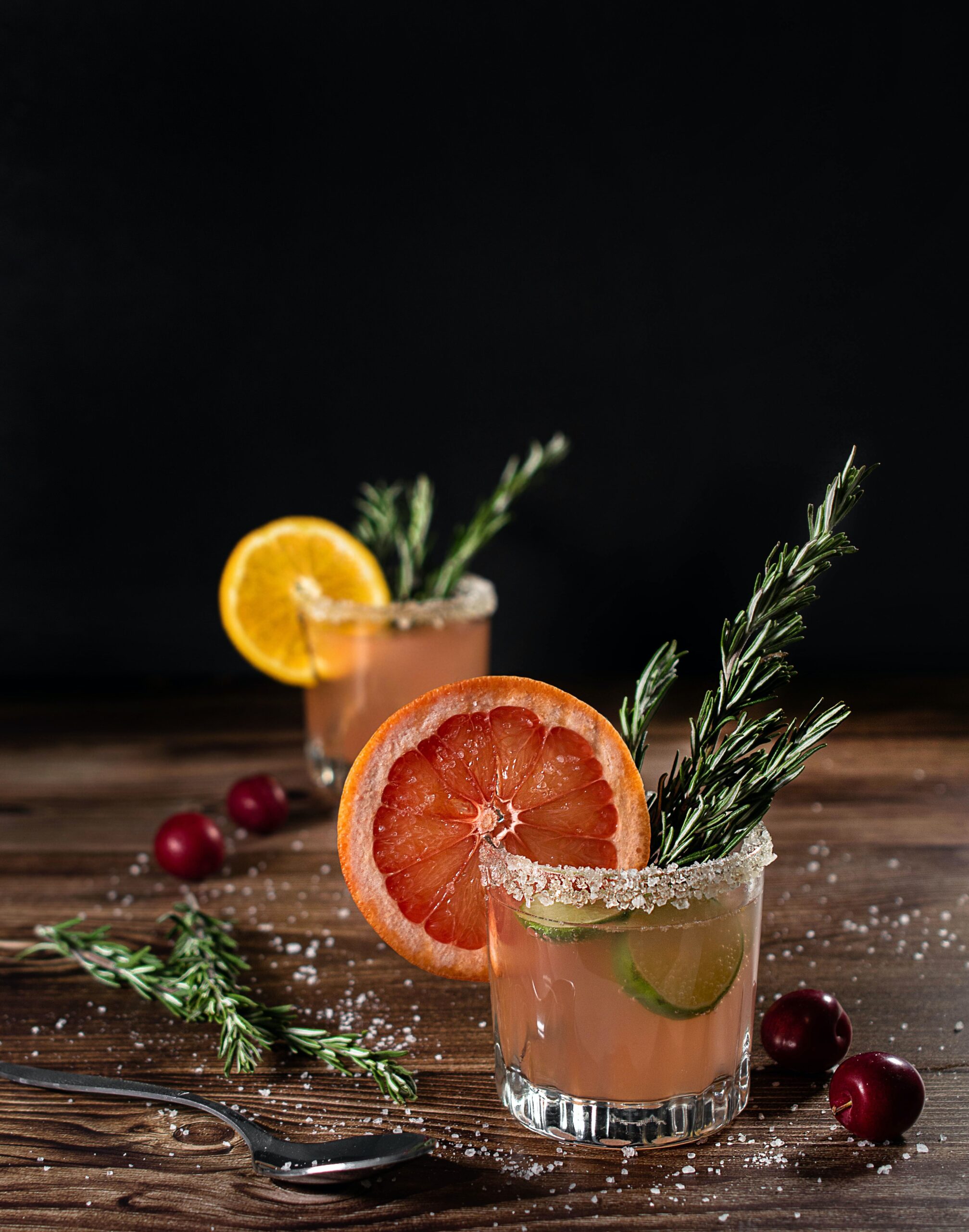 Shake all ingredients, strain over ice in a salt-rimmed rocks glass.